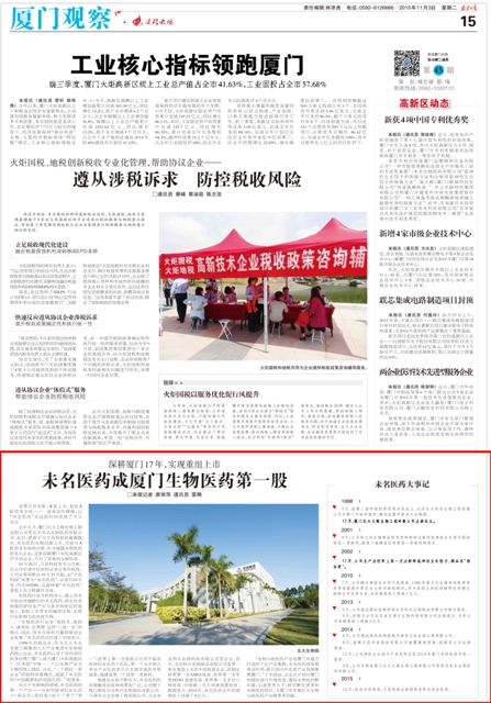 《福建日報》:未名醫藥成廈門生物醫藥第一股